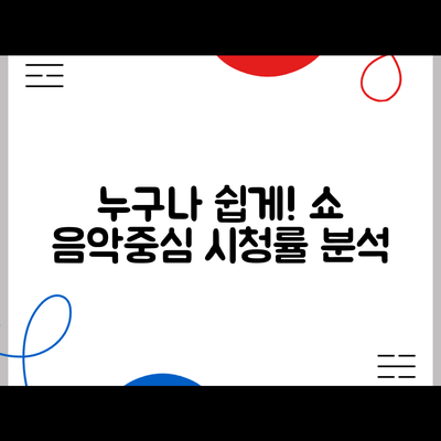 쇼 음악중심시청률을 분석하기 위한 중요한 요소들을 살펴보겠습니다. 각 요인이 어떻게 시청률에 영향을 미치는지 알아보세요.